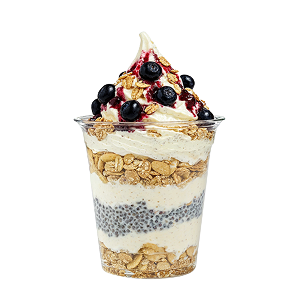 გაყინული იოგურტი შერეული კენკრითა და ჩიათი