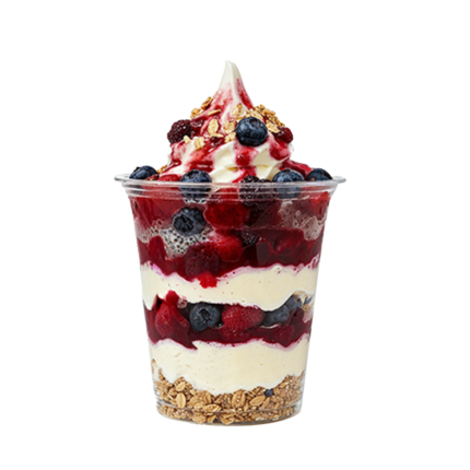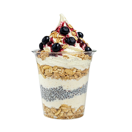 გაყინული იოგურტი შერეული კენკრითა და ჩიათი